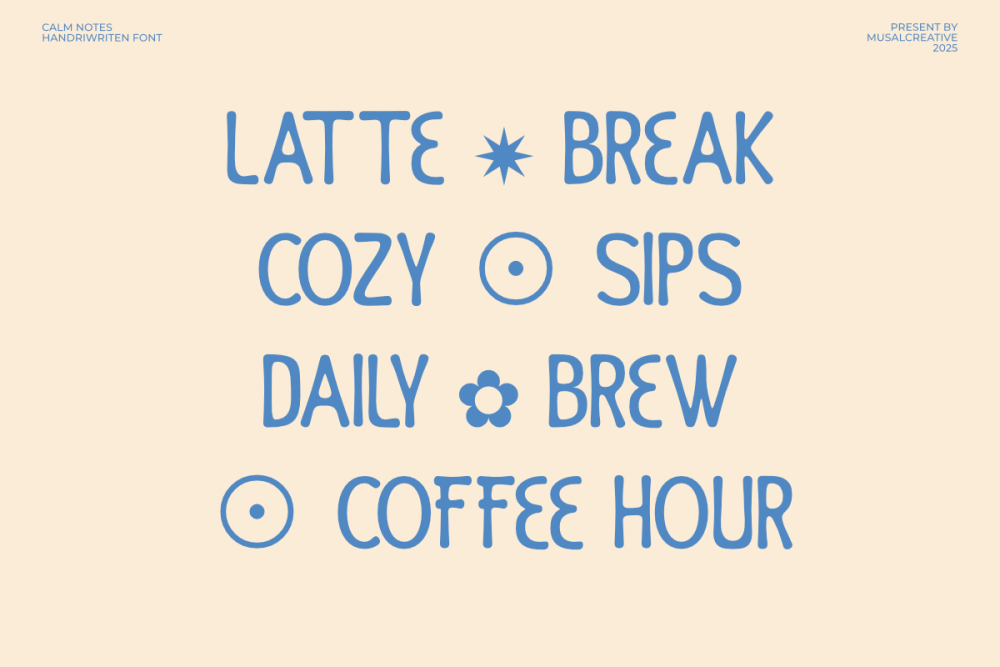 Inspired by everyday moments like sipping coffee, journaling, or enjoying a slow Sunday morning, Calm Notes captures the essence of cozy living. It works beautifully for lifestyle blogs, coffee shop branding, stationery, greeting cards, or any design that needs a friendly, handwritten feel.