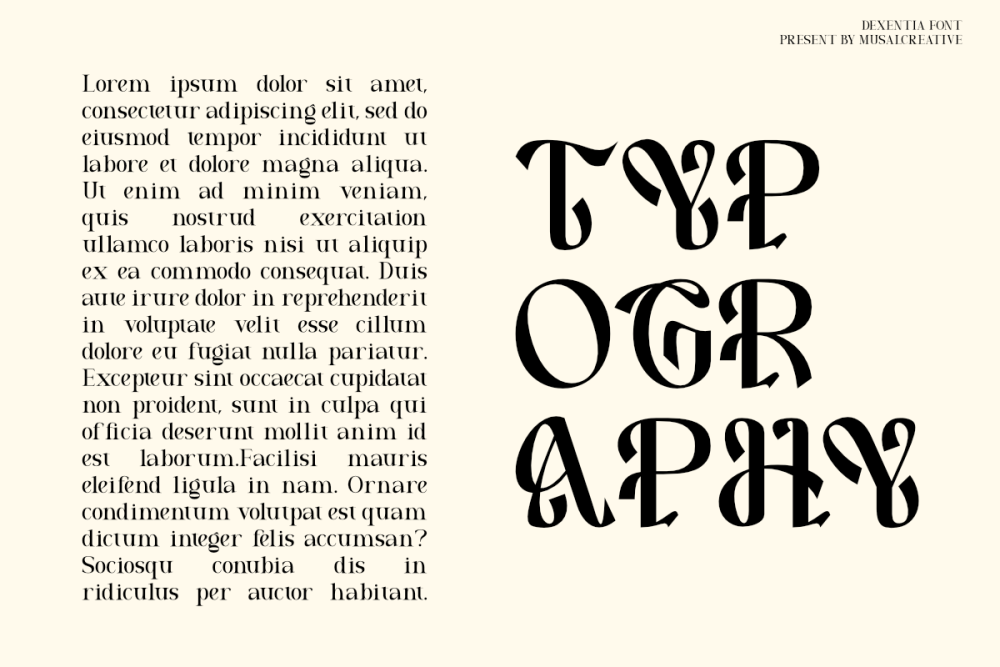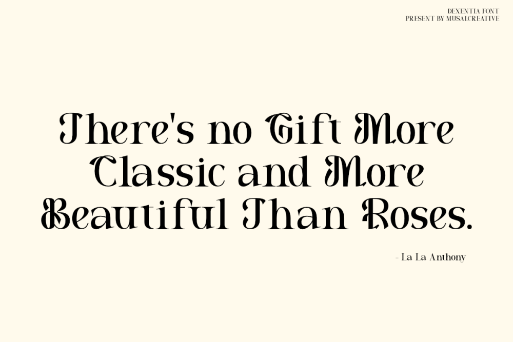 Dexentia is a refined modern serif that blends the elegance of classic typography with a bold, contemporary edge. Inspired by blackletter aesthetics yet infused with sleek, modern details, this font offers a distinctive style perfect for editorials, fashion branding, luxury designs, and Y2K-inspired visuals.