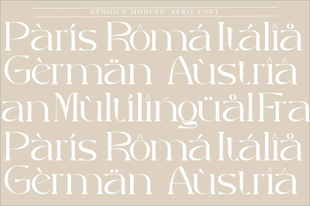 Gegich Modern serif Font typeface with beautiful ligature, special glyphs, ornament and multilingual support. It’s a very versatile font that works great in large and small sizes. Perfect for editorial projects, Logo design, Clothing Branding, product packaging, magazine headers, or simply as a stylish text overlay to any background image.