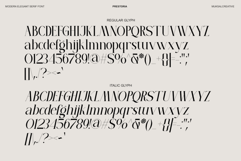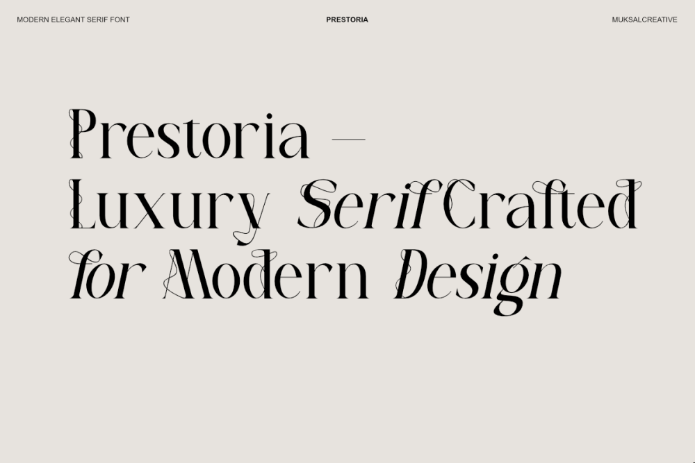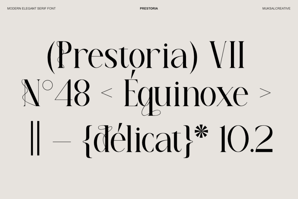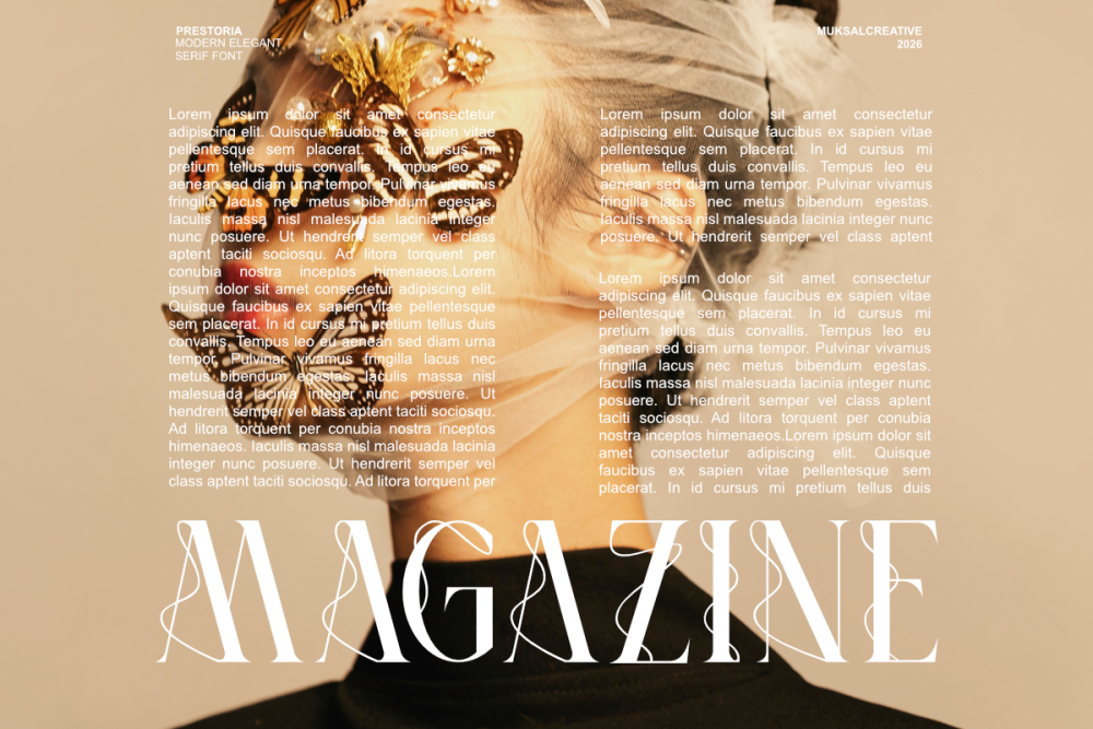Whether used for fashion editorials, luxury branding, logos, magazine layouts, invitations, or premium packaging, Prestoria brings a sense of elegance, confidence, and artistic refinement to your typography.